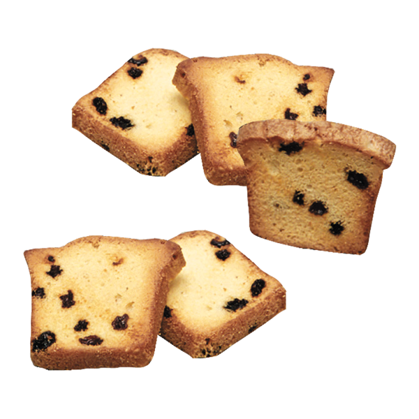 脆面包类饼干,特级小麦粉、黄油、葡萄干和香兰素调味料。
