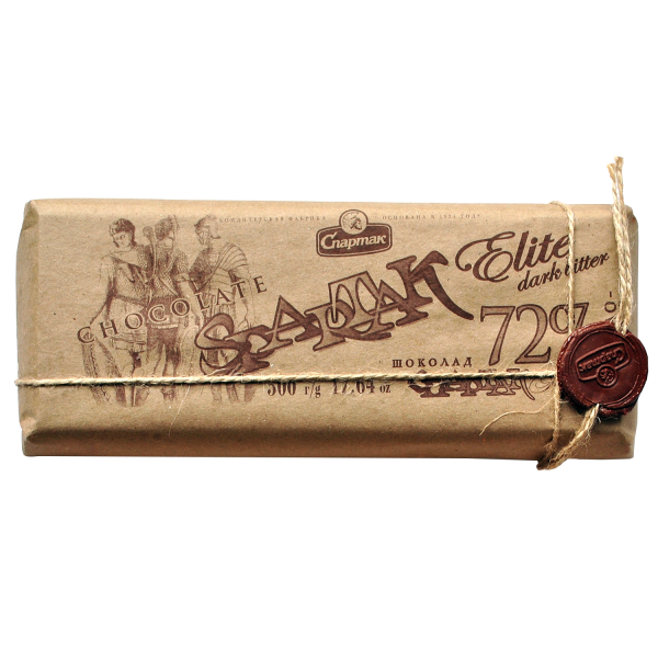 斯巴达克黑巧克力 (牛皮纸) 72%, 500 克