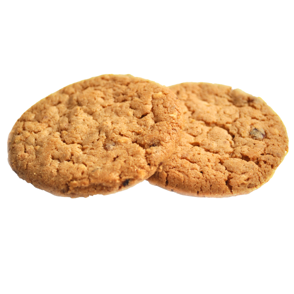 Round cookies made of mixture of oat flour and wheat flour of prime quality. Sugar powder, raisins, ground roated peanuts, and vanillin added.
