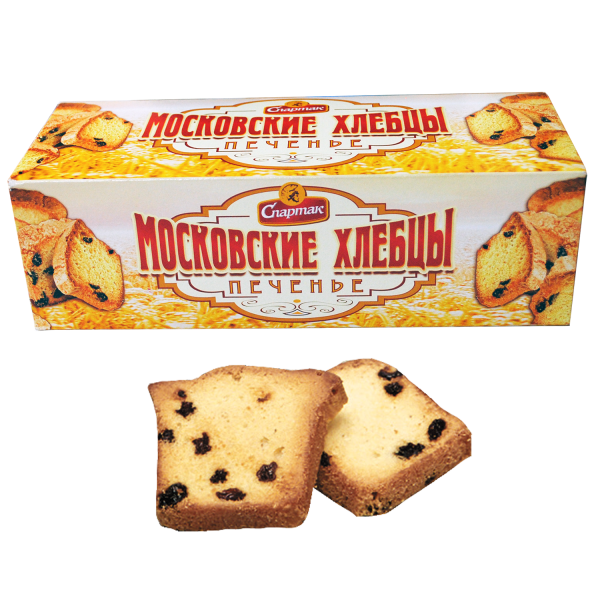 Rich cookies made of wheat flour of prime quality with butter. Sugar powder, raisins, and vanillin added.