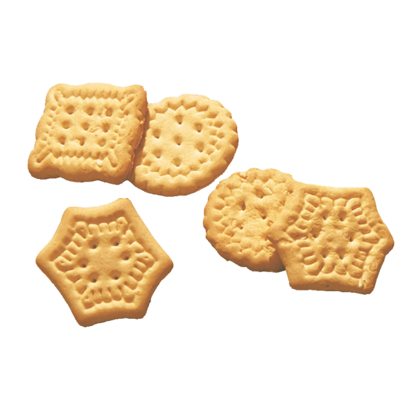 Variably shaped biscuits made of wheat flour of prime quality. Sugar, whole milk powder, and baked milk flavour added.